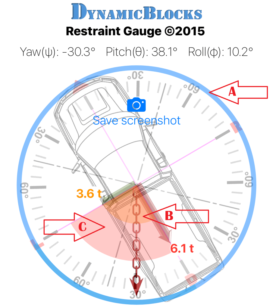 A) Round the circumference of the dial. The blue color edge’s thickness shows the intensity of the Tie-down Restraint.